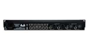 Input options include XLR and 1/4-inch TRS balanced inputs with matching “Thru” jacks for bridging multiple units. An additional front panel stereo 1/4-inch TRS Direct In jack for quick patch override of the rear panel inputs is included for quick insertion of any stereo source. Master Volume control sets the main signal bus level. Eight-segment precision LED level metering on the main bus and four-segment indicators on each output channel provide visual feedback of the signal level at all key points.