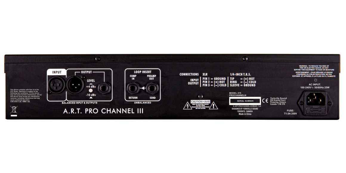 Get studio-quality input processing without breaking the bank with the ART Pro Channel III, a rackmounted channel strip with a Class-A FET mic preamp, selectable opto/tube or FET compressor, and semi-parametric 4-band EQ with sweepable mid frequencies. With selectable mic impedance and a Hi-Z front-panel input, you can handle virtually any input source.