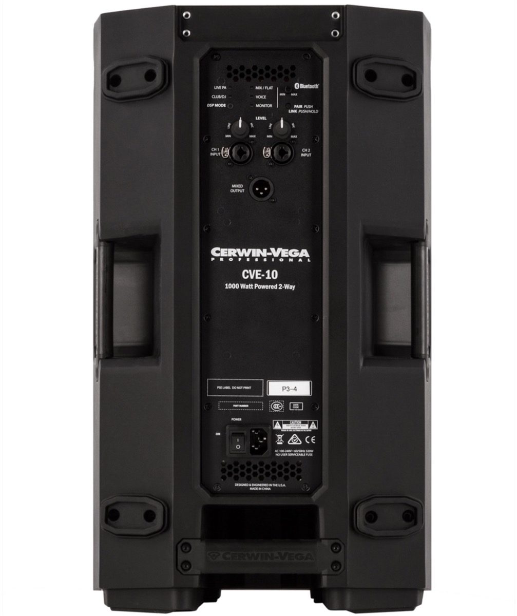 The Cerwin Vega CVE-10 powered Loudspeaker features 1000 watts of Class D Power, a 10″ woofer and a 1” exit high frequency compression driver. Besides the 2 Combo XLR/TRS Inputs and one XLR output, there are 5 easy-to-use DSP driven Modes to tailor your sound. In addition each CVE speaker allows audio streaming via Bluetooth from any smartphone or tablet, mono or even stereo paired. The lightweight polymer enclosure design combined with 124dB of headroom, makes the CVE-10 the ideal solution for live applications, mobile DJs, houses of worship, clubs, restaurants, conference rooms, and more. Listen for yourself to Cerwin Vega’s 65 years of experience.