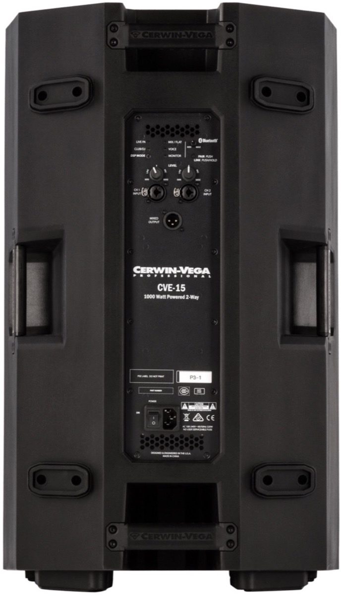 The Cerwin Vega CVE-15 powered Loudspeaker features 1000 watts of Class D Power, a 15″ woofer and a 1″ exit high frequency compression driver. Besides the 2 Combo XLR/TRS Inputs and one XLR output, there are 5 easy-to-use DSP driven Modes to tailor your sound. In addition each CVE speaker allows audio streaming via Bluetooth from any smartphone or tablet, mono or even stereo paired. The lightweight polymer enclosure design combined with 128dB of headroom, makes the CVE-15 the ideal solution for live applications, mobile DJs, houses of worship, clubs, restaurants, conference rooms, and more. Listen for yourself to Cerwin Vega’s 65 years of experience.