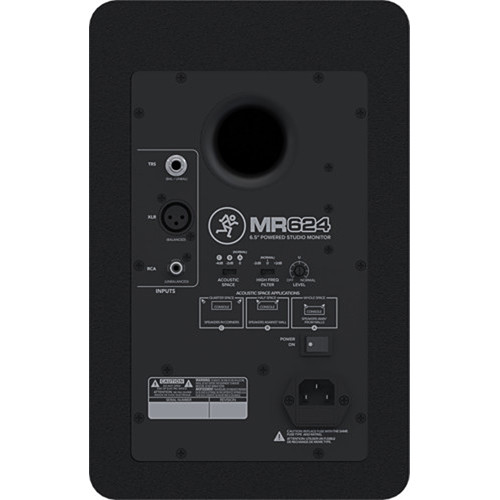 The Mackie MR624 Studio Monitor is a powered 6.5″ 2-way reference speaker that is designed for mixing and monitoring in your home or project studio. It features a logarithmic waveguide system that aims to minimize reflections and diffractions for a wider sweet spot, plus a custom-tuned rear port to help ensure an even bass response.