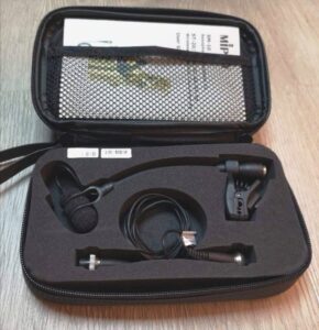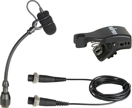 The MIPRO SM10 Saxophone Microphone Kit includes a saxophone microphone, saxophone microphone cable, and saxophone microphone clip. The key features are it fits snugly, easy to install & remove, and protects the expensive musical instruments from surface scratches. Strategically placed in positions that will pick up accurate acoustic reproduction during performance without the handling, movement and hit the noises.
