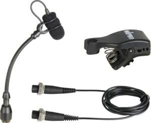 The saxophone microphone clip holds SM-10M microphone and is specially designed for saxophone application. The gooseneck saxophone microphone attaches to SM-20H and clamps onto saxophones.