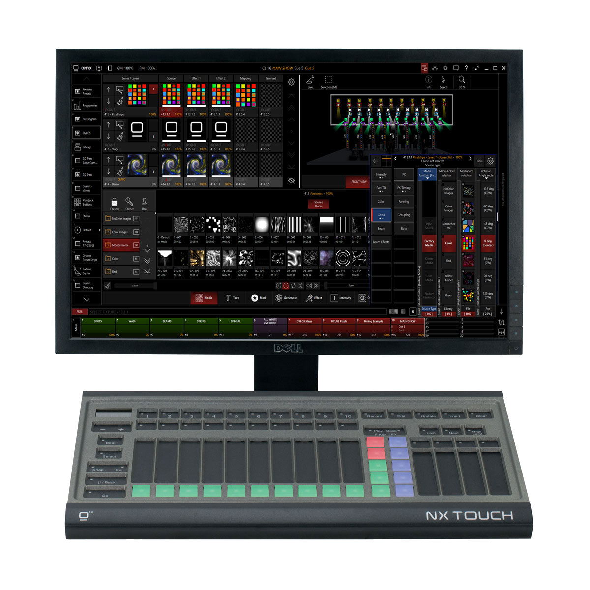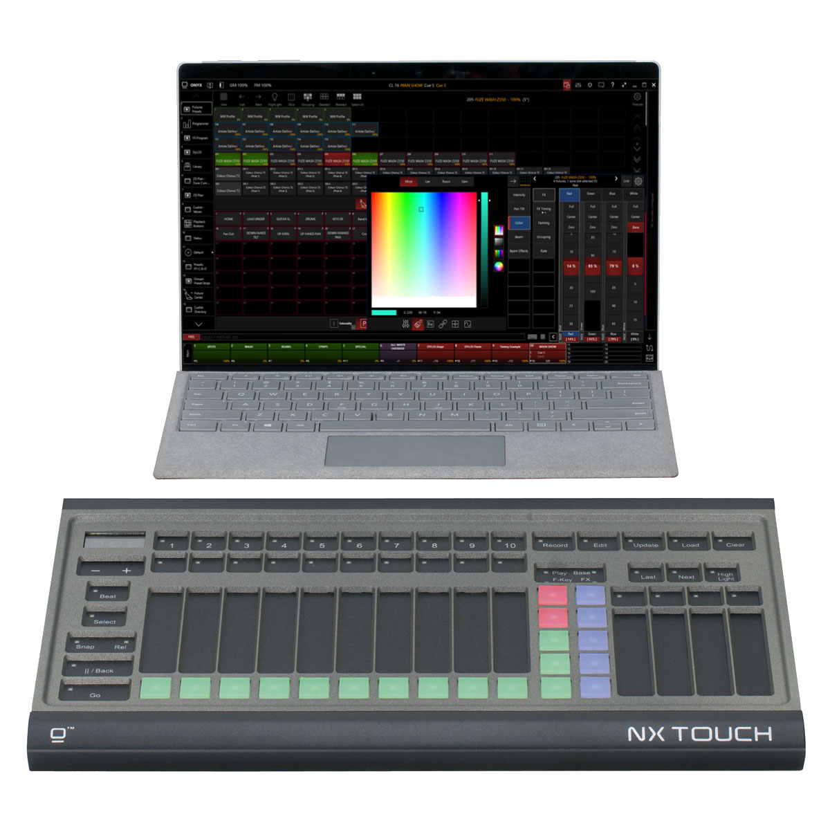 The NX Touch is a powerful yet simple control surface for the ONYX platform, Fully compatible with all ONYX consoles and PC software, NX Touch is a plug-and-play solution with an innovative control surface like no other lighting console.
