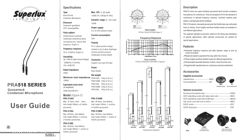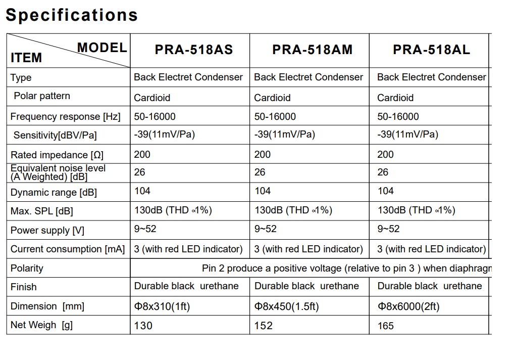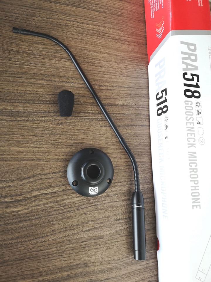 PRA518 Gooseneck Condenser Microphones incorporate a small back Electret Cardiod Capsule and are supplied with Foam windscreen and HM-22 Table-Mount base.
