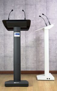 - Lectern composed of Metal Base, Aluminum Column, Acrylic top