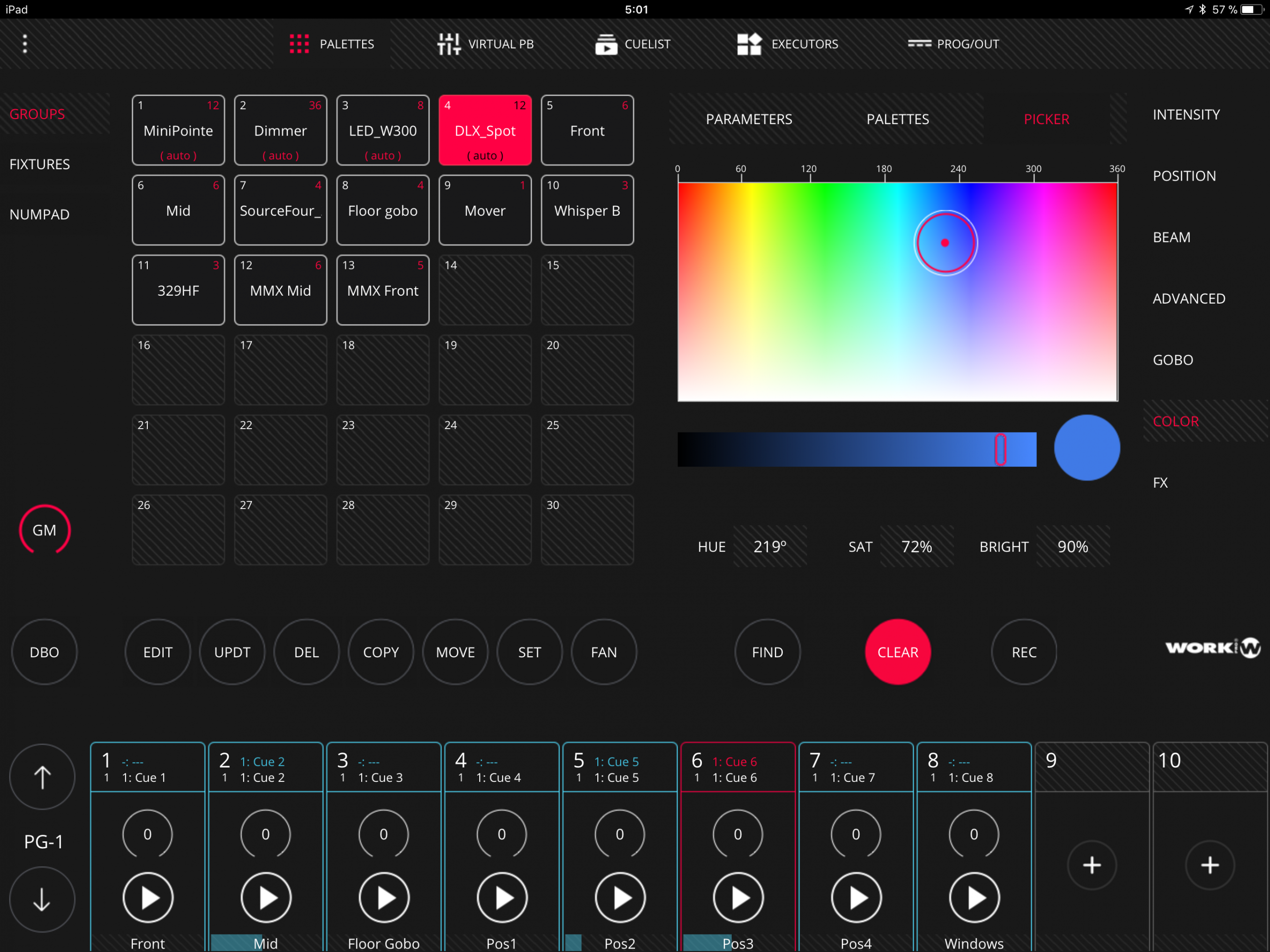 LS-Core is the smallest 8 universe lighting console in the market, bringing a built-in hardware with the LightShark engine including all its features. A USB-host input is available to connect a MIDI surface hardware to use real faders and buttons.